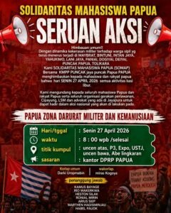 Tim Investigasi HAM Kabupaten Puncak dan Mahasiswa Puncak Se-Indonesia bersama rakyat akar rumput Papua menyampaikan seruan aksi nasional yang akan dilaksanakan pada 27 April 2026 sebagai respons atas krisis kemanusiaan yang terjadi di Kabupaten Puncak.