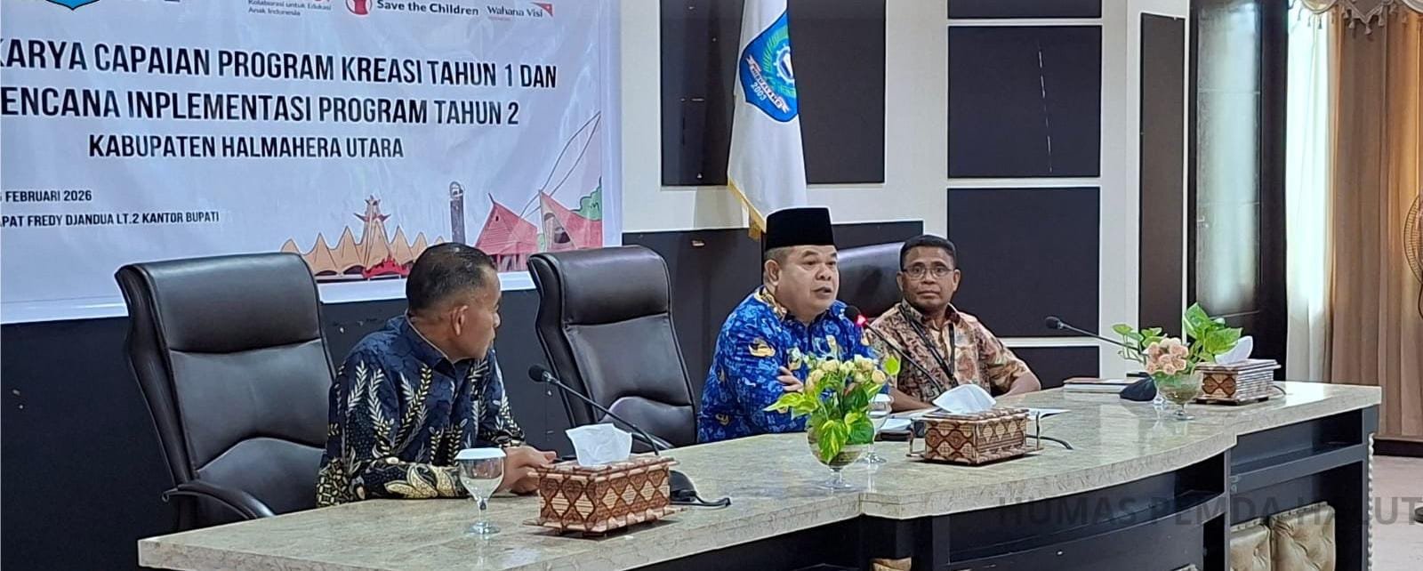 “Hari ini kita melaksanakan lokakarya untuk membahas capaian program KREASI tahun pertama serta merencanakan implementasi tahun kedua di Kabupaten Halmahera Utara. Melalui lokakarya ini, kita mengidentifikasi berbagai persoalan pendidikan dan mencari solusi yang akan menjadi agenda perbaikan ke depan,” ujarnya.