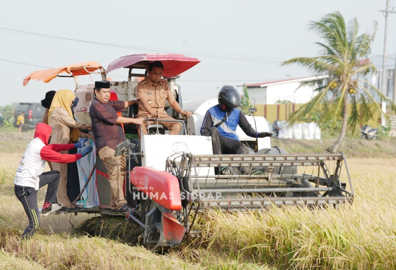 SIDRAP — Bupati Sidenreng Rappang, Syaharuddin Alrif, menghadiri panen padi di Desa Salobukkang, Kecamatan Dua Pitue, Senin (2/3/2026) yang bertepatan dengan 12 Ramadan 1447 Hijriah.