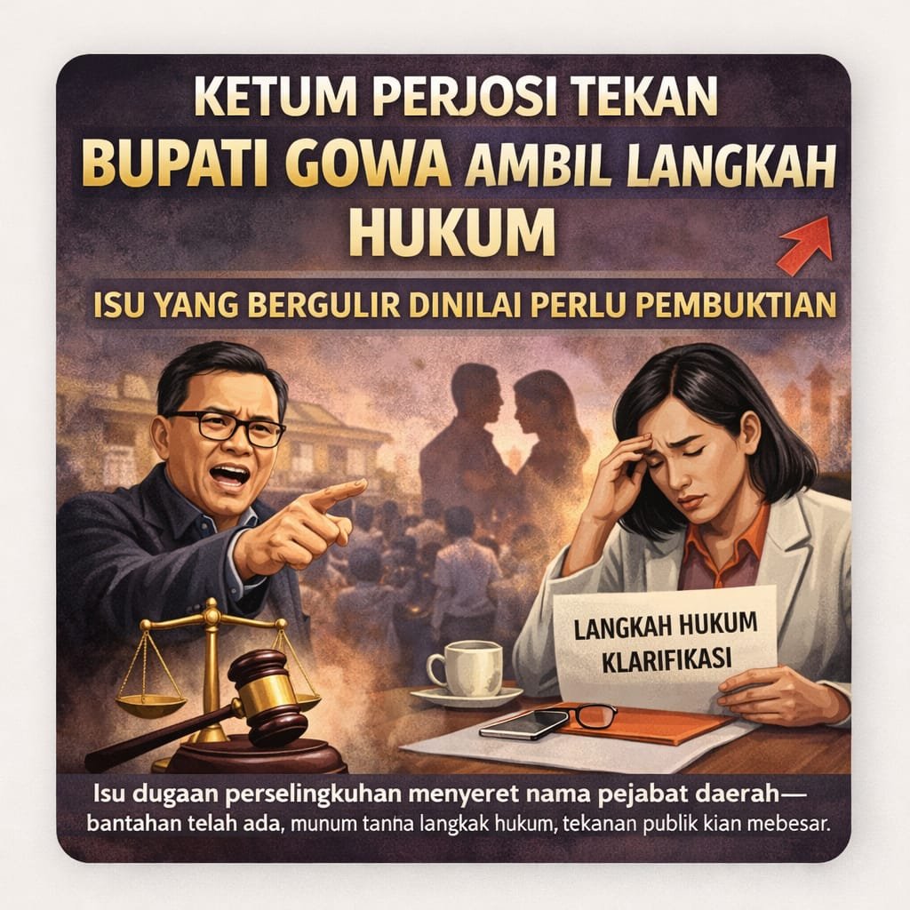Ketua Umum Perserikatan Journalist Siber Indonesia (Perjosi) menekan Bupati Gowa agar segera mengambil langkah hukum atas isu yang berkembang, guna memastikan kebenaran dapat diuji secara objektif dan menghentikan spekulasi yang terus meluas di ruang publik.