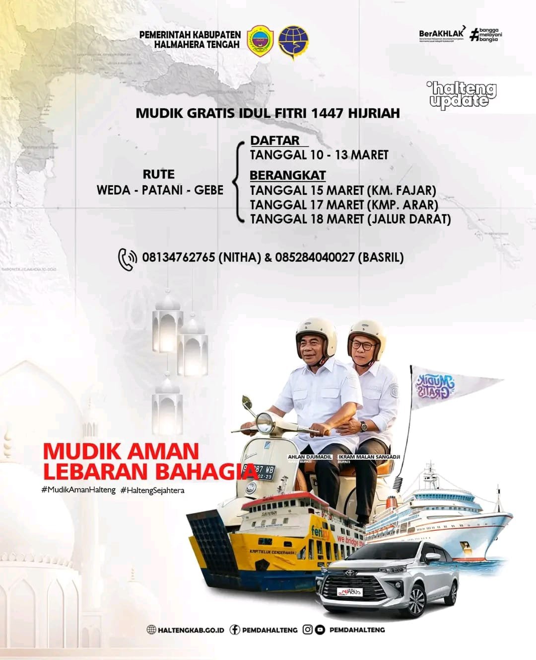 Halmahera Tengah, Maret 2026 – Pemerintah Daerah Kabupaten Halmahera Tengah kembali melaksanakan program Mudik Gratis Idul Fitri 1447 Hijriah sebagai wujud kepedulian terhadap masyarakat yang ingin pulang ke kampung halaman untuk merayakan Hari Raya bersama keluarga. Program ini merupakan bagian dari komitmen pemerintah daerah dalam memberikan pelayanan terbaik, khususnya dalam mendukung kelancaran perjalanan mudik agar lebih aman, nyaman, dan terjangkau.
