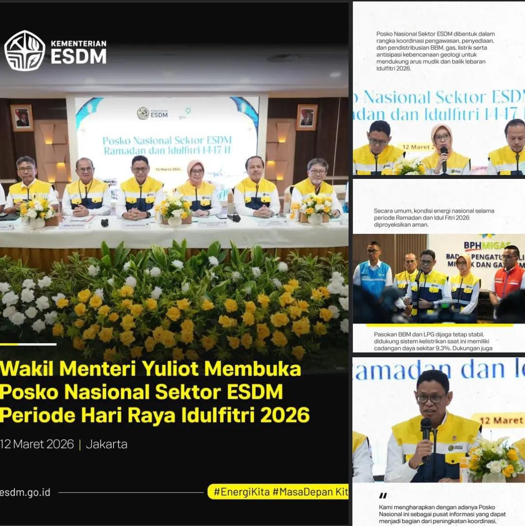 Pemerintah resmi membuka Posko Nasional Sektor Energi dan Sumber Daya Mineral (ESDM) untuk menghadapi periode Ramadan hingga Idulfitri 2026. Posko ini dibentuk guna memastikan ketersediaan energi nasional tetap aman selama meningkatnya aktivitas masyarakat, khususnya pada masa mudik Lebaran.