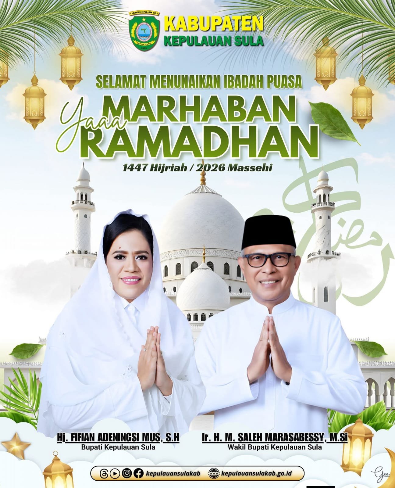 Sanana – Pemerintah Kabupaten Kepulauan Sula menyampaikan ucapan selamat menunaikan ibadah puasa kepada seluruh umat Muslim dalam menyambut bulan suci Ramadan 1447 Hijriah.