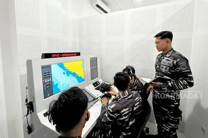 Latihan berlangsung di Pusat Kapal Perang (Pusatkaprang) Komando Latihan Koarmada I pada Senin (23/2). Prajurit TNI AL diasah kemampuan tempurnya untuk menjaga Zona Ekonomi Eksklusif (ZEE) Indonesia.