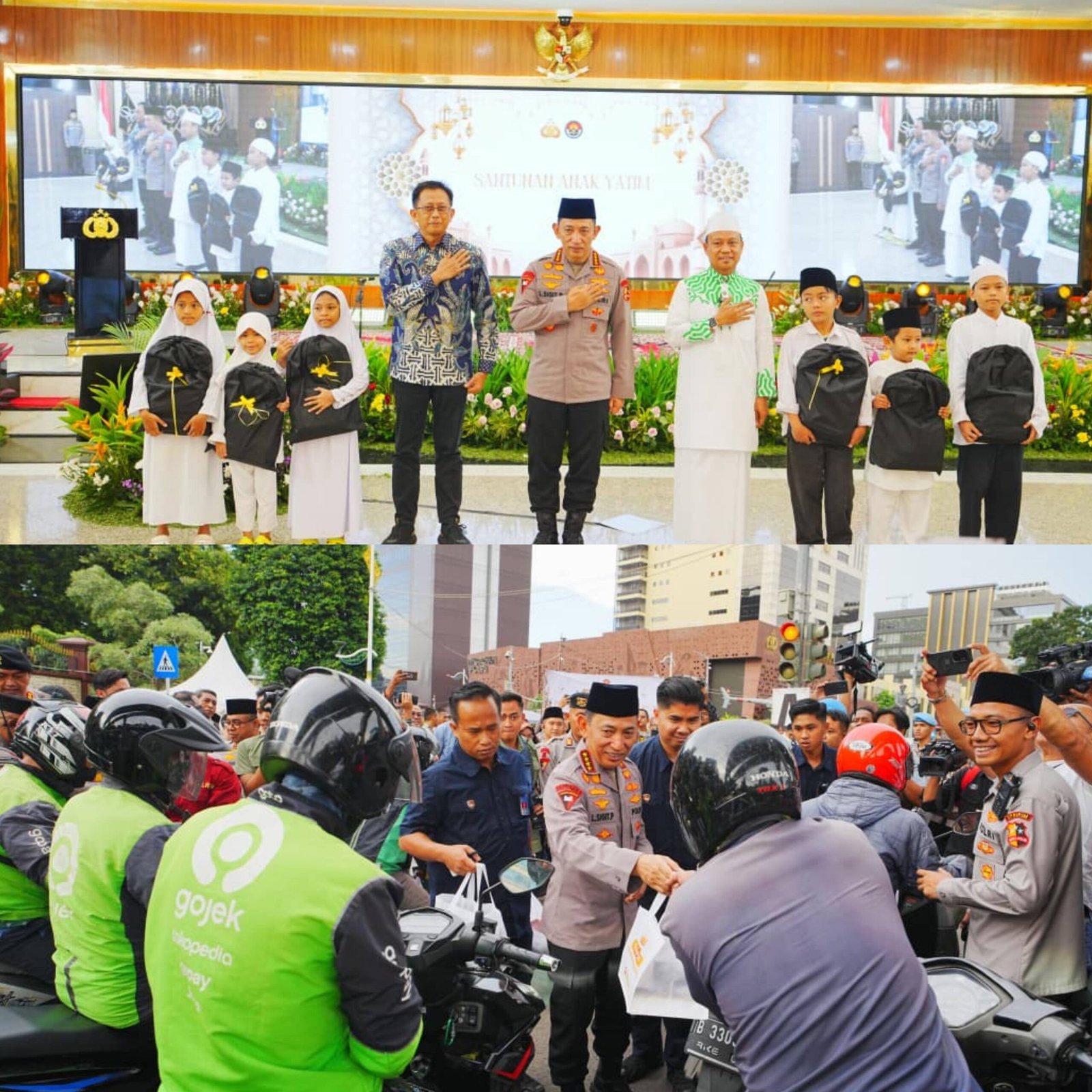 Rangkaian acara diawali dengan pembagian takjil kepada masyarakat yang melintas di depan kantor Mabes Polri. Kapolri bersama pejabat utama dan para jurnalis turun langsung membagikan paket buka puasa kepada pengendara, masyarakat umum, hingga pengemudi ojek online.