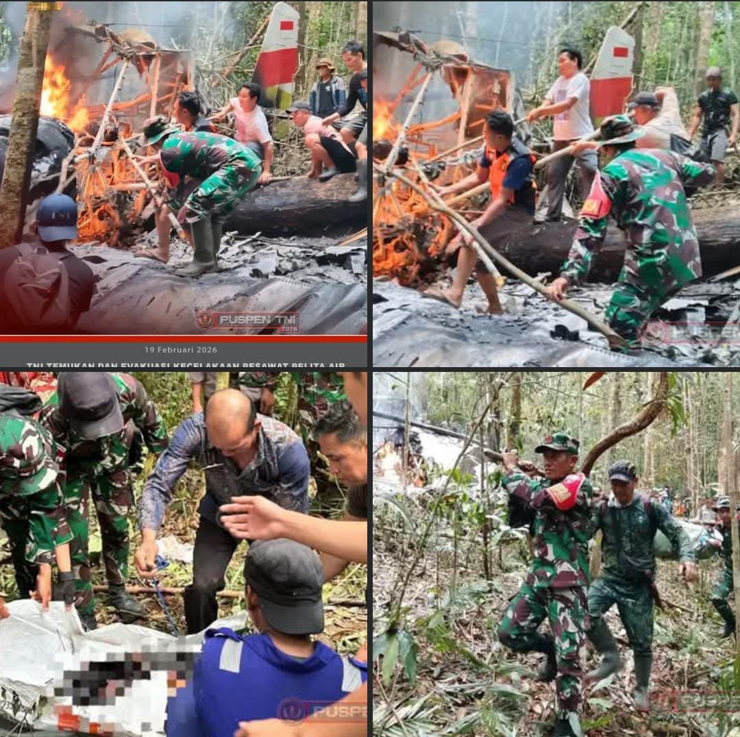Kalimantan Utara – TNI melalui Satgas Pengamanan Perbatasan RI–Malaysia Yonarmed 4/Prh bersama unsur Komando Distrik Militer Nunukan bergerak cepat menanggapi kecelakaan pesawat milik PT Pelita Air Service di kawasan pegunungan Pabetung Remayo, Kecamatan Krayan Timur, Kabupaten Nunukan, Kamis (19/2).