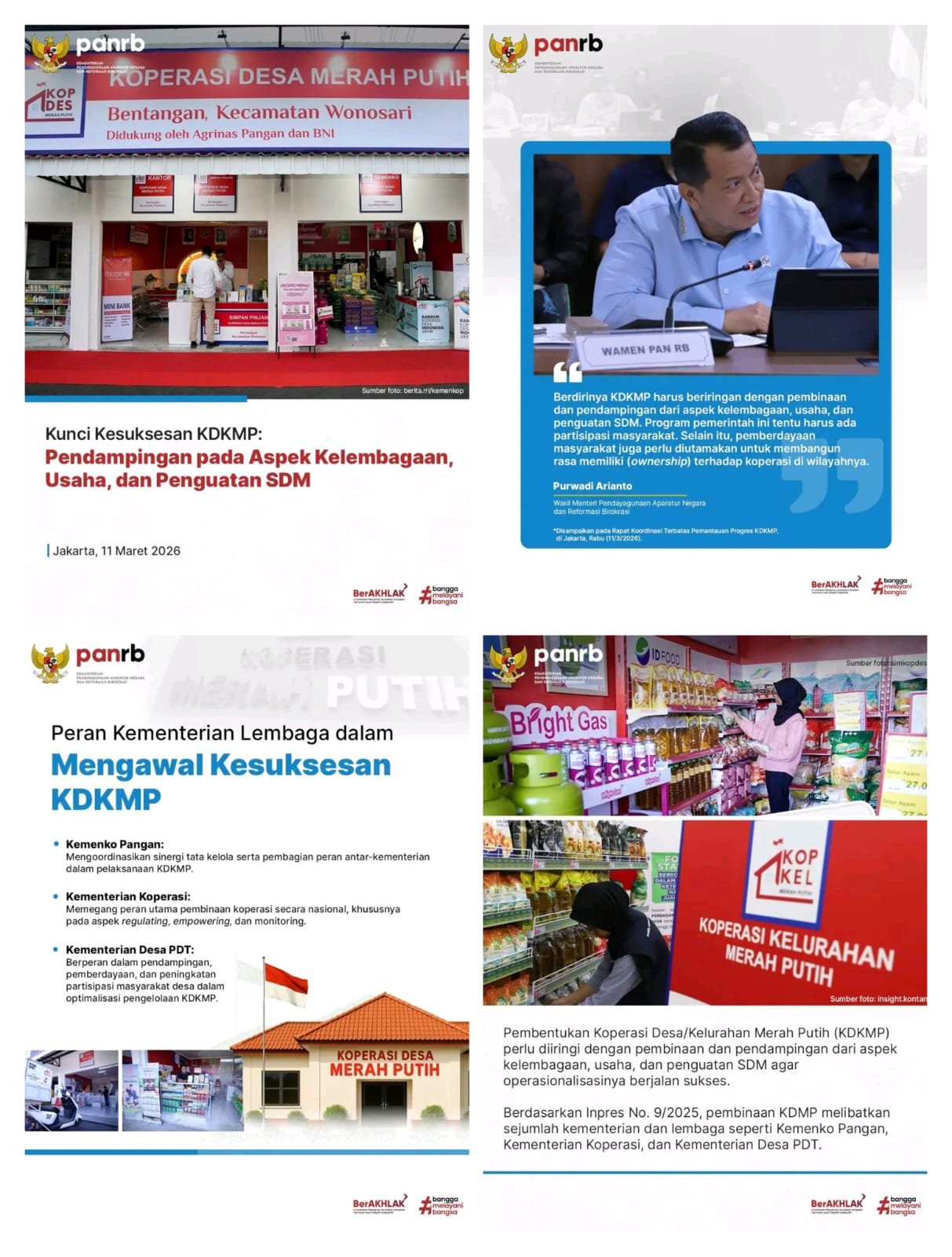 Jakarta – Wakil Menteri Pendayagunaan Aparatur Negara dan Reformasi Birokrasi (PANRB), Purwadi Arianto, menghadiri Rapat Koordinasi Terbatas yang dipimpin oleh Menteri Koordinator Bidang Pangan, Zulkifli Hasan, di Kantor Kemenko Bidang Pangan, Jakarta, pada (11/3/2026). Rapat ini fokus membahas percepatan pembangunan Koperasi Desa/Kelurahan Merah Putih (KDKMP), termasuk progres yang terus bertambah setiap hari dengan target penyelesaian sekitar 20.000–30.000 unit dalam waktu dekat.